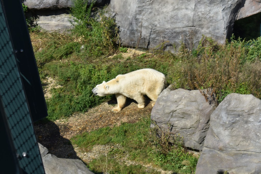 Oberhalb des Polariums besuchten wir die Eisbären, welche sich allerdings zumeist in der Höhle versteckten und daher schwer vor den Fotoapparat zu bekommen waren. Gegenüber waren andere Bärenarten anzutreffen.