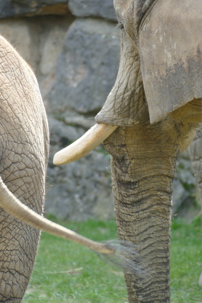 Wir gingen von der Anhöhe wieder in die Talsohle, an den Erdmännchen vorbei, zu den Elefanten. Wir konnten die Elefantenjungen sehen, welche gut im Familienverband geborgen waren. Ein schöner Anblick!
