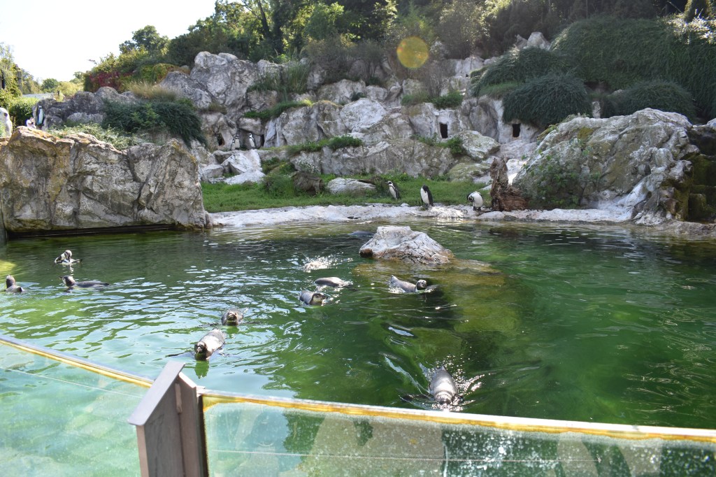 Neben den Robben, auf der anderen Wegseite waren die Pinguine. Für sie gab es auch eine Schwimmmöglichkeit. Auch im gegenüberliegenden Polarium waren verschiedene Pinguinarten anzutreffen.