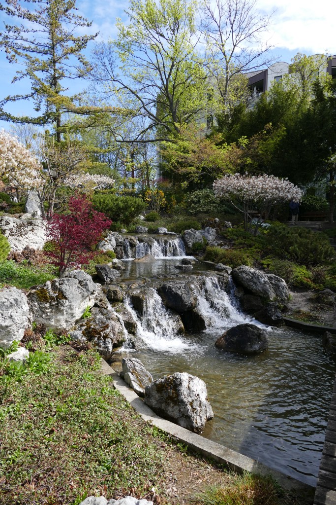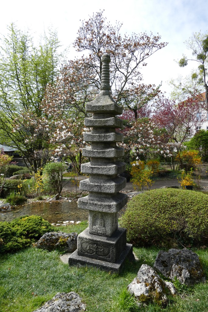 Vorbei am Quellbecken führten wir die Runde entlang des plätschernden Wassers weiter und kamen an einer steinernen Pagode vorbei, es war ein illustrer Anblick. Einige Bänke am Rand des Weges luden zum Verweilen ein. Wir nahmen Platz, machten Pause, und schossen wieder ein paar Fotos. Da der Park intensiv war hingegen nicht sehr groß, verließen wir ihn wieder durch den Bambus Eingang. Die Zeit war noch nicht so fortgeschritten, es war kurz nach 11h, daher führten wir den Ausflug im jenseits der Vorortelinie liegenden Wertheimsteinpark fort.