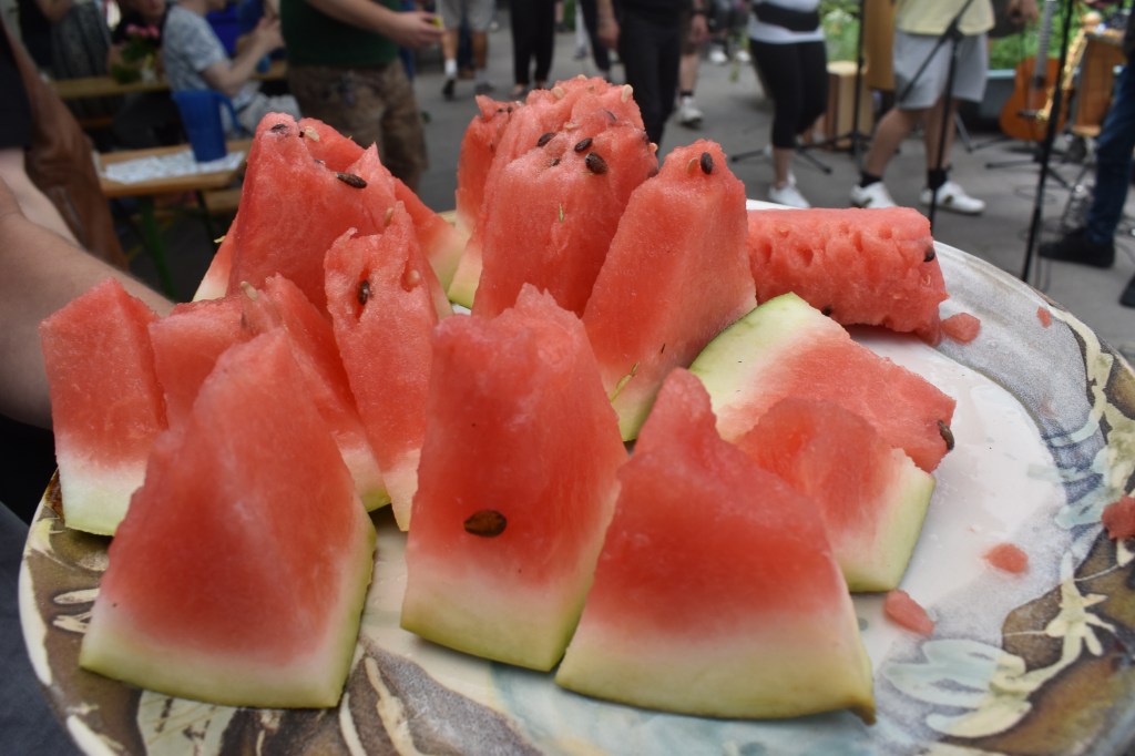 Gegen Ende des Tages wurden noch geschnittene Melonen ausgeteilt und „heiße Liebe“ (Vanilleeis mit Himbeersauce) angeboten. Auch Kaffee wurde ausgeschenkt. In der letzten Stunde war noch eine Open Stage eingerichtet, wo jeder noch einige „Schmankerln“ zum Besten geben konnte. Wir hatten ein sehr abwechslungsreiches und schönes Sommerfest!