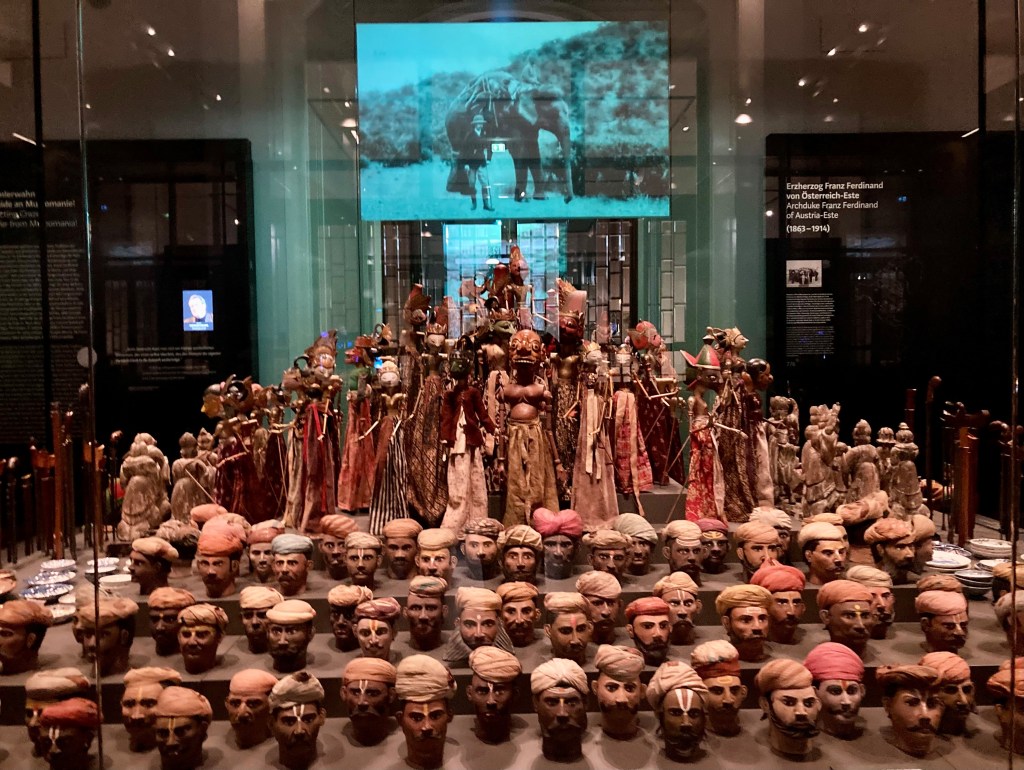 Wir sahen Stammesutensilien, Einrichtungsgegenstände der speziellen Kultur und vor allem Videoinstallationen über berühmte Ethnolog:innen. Auch eine Beschreibung über das Wirken von Sigmund Freud war dabei. Im Wesentlichen wurde dokumentiert, wie der „Kulturkampf“ zwischen Vertretern der katholischen Moral– und Soziallehre und der „Wiener Moderne“ ausgelebt wurde.