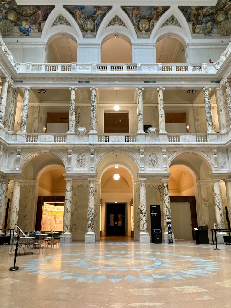 Am Mittwoch, dem 12. Februar 2025, traf sich die Mediengruppe/Vormittag um 11h beim Weltmuseum in der Hofburg. Wir gingen zuerst in den großen Marmorsaal, wo wir einige Fotos schossen. Die Ausstellungen waren aufgeteilt auf Hochparterre und Mezzanin, wo wir zunächst die Hof– und Jagdrüstkammer des Hauses Habsburg aufsuchten. Es war eine beeindruckende Sammlung von Harnischen und Kettenhemden, auch Rüstungen von Pferden waren zugegen. Die Schwerter, Armbrüste, Degen und Pfeilköcher rundeten diese Ausstellung ab. Die Gruppe ging herunter ins Hochparterre, wo sie eine Schausammlung über alte und ferne Kulturen erwartete.