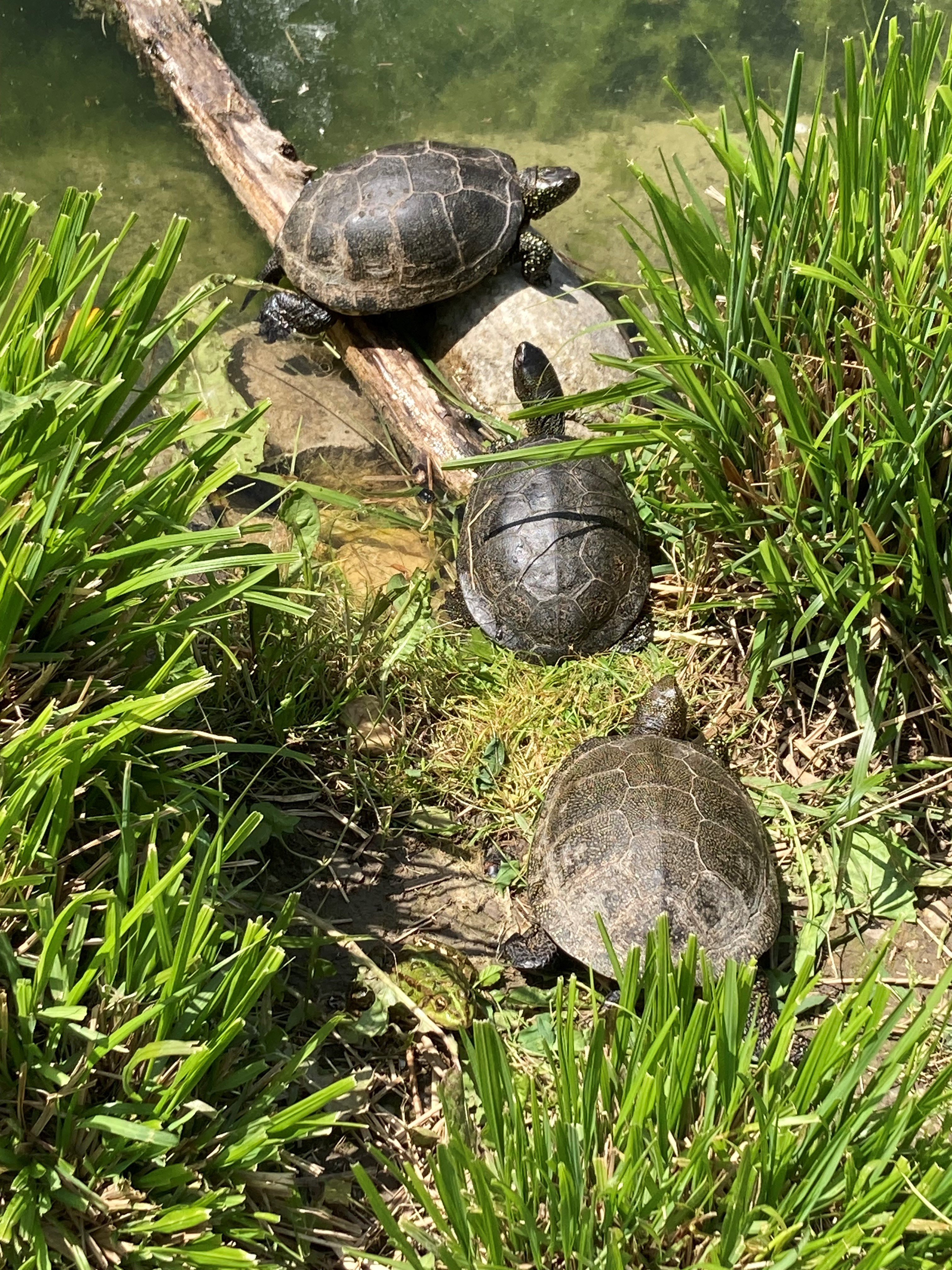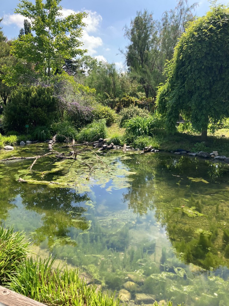 Schon beim Eingangstor erwarteten uns Ziesel, welche sehr zutraulich waren. Die Gruppe sammelte sich, und wir gingen den Weg links hinan zu den Störchen. Rechts und links vom Weg sahen wir Beschreibungen von Flora und Fauna, welche zum Großteil unbekannt waren. An einem nahegelegenen Teich sahen wir Schildkröten, welche sich in der Sonne räkelten. Wir gingen weiter zu einer Brücke, welche über einen großen See führte.