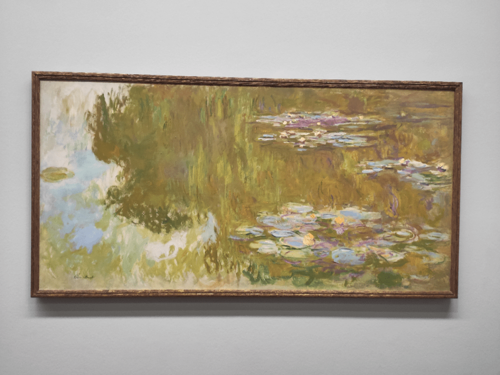 Zwei Gemälde (Öl auf Leinwand) stachen mir besonders ins Auge, das waren „Der Seerosenteich“ und „Blick auf Vétheuil“ von Claude Monet. Wir sahen auch bedeutende Künstler des Pointillismus, eine Spätform des Impressionismus, welche sich durch Auftragen von winzigen Tupfern kennzeichnet. Diese Tupfer sind reine Farbe, die sich erst im Auge des Betrachters mischen. Ein markantes Gemälde dieser Art sahen wir in „Venedig, die rosa Wolke“ von Paul Signac aus dem Jahre 1909.