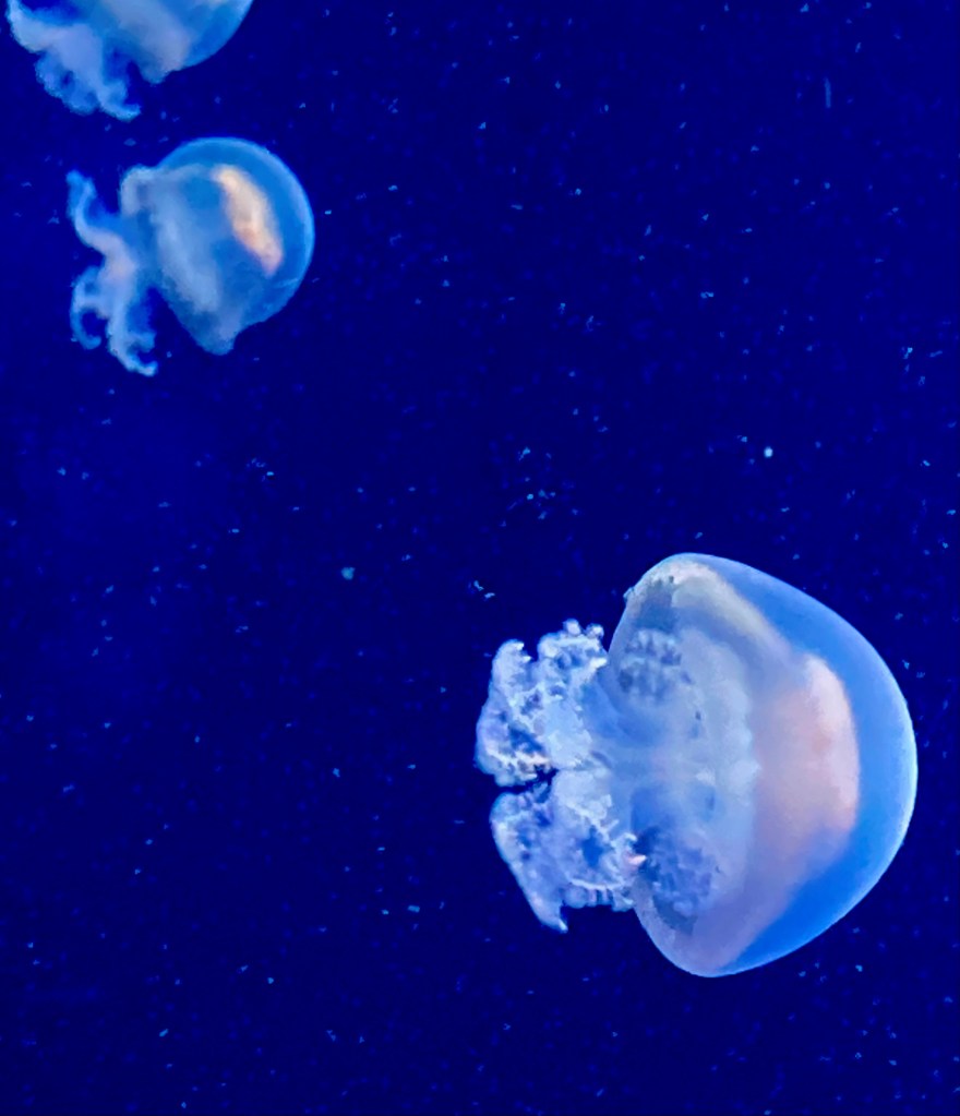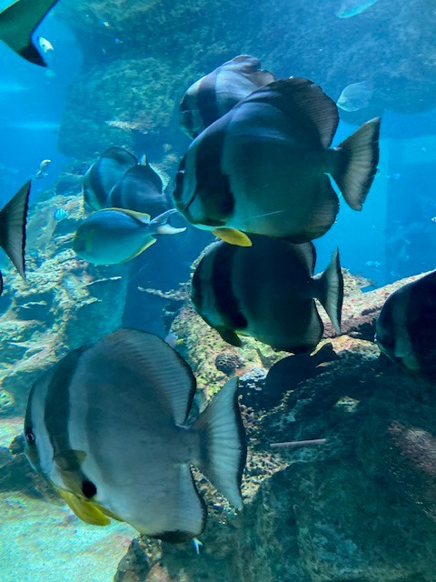 Nachdem die Gruppe im Erdgeschoss den Ticketschalter passiert hatte, versammelte sie sich bei der Ecke zum „Atlantiktunnel“, eine außen verglaste Röhre, die von Wasser umgeben ist. Außer dem Atlantiktunnel gibt es im Erdgeschoss noch das „Koi–Becken“, wo es erlaubt ist mit den Händen hineinzugreifen, den Shop und die Garderobe. Wir beschlossen einander wieder um 12 Uhr 45 zu treffen. Der Großteil der Gruppe fuhr gemeinsam mit den drei Betreuer:innen mit dem Lift in den neunten Stock, wo unsere eigentliche Tour durch das Haus des Meeres begann.