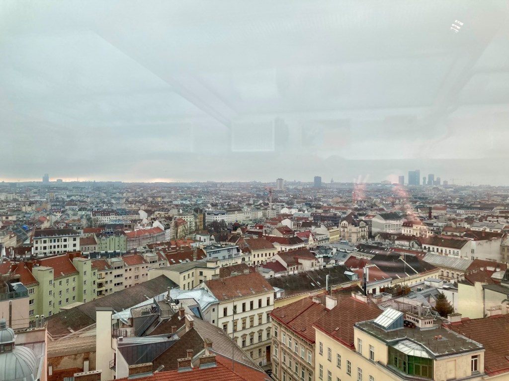 Ausgehend von der Station beim Apollokino gingen wir das kleine Teilstück hinauf zum Flakturm. Dieser ist durch Zubauten komplett verglast und weist elf Stockwerke auf. Im elften Stock befindet sich das Restaurant „Ocean Sky“ mit einer Dachterrasse und einer 360º tollen Aussicht über Wien. Im zehnten Stock ist der „Viktor–Otte–Saal“ und „Lighthouse10“, ein Veranstaltungsraum für Events und Vorträge. Weiters hatten wir dort die Möglichkeit die Ausstellung „Erinnern im Innern“ zu besuchen, die die Rolle des Flakturms im zweiten Weltkrieg beleuchtet.